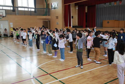 今日は3時間目に1年生を迎える会を体育館で行いました。
