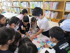 みんな真剣な眼差しで、子ども司書が手にしている本に注目していました。今回も、終わった後に手作りの「しおり」のプレゼントがありました。「押さないで。押さないで。並んでください」プレゼントの「しおり」は、大人気でした。ぜひ、また聞きに来てくださいね。