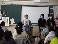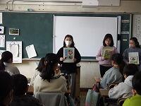 昨日は5-1で、今日は5-2で、朝自習の時間に5年生のこども司書講座の4名が「ブックトーク」を行いました。
