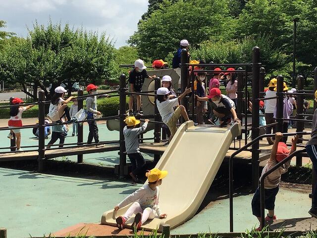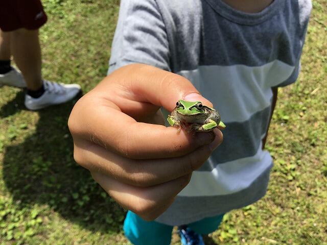 午前中いっぱい1.2年生で遊んで,生き物とふれ合って大満足です。