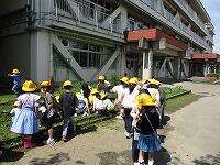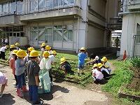 5校時に、1年生が花壇の草取りをしていました。1・2年生が使う低学年の花壇です。