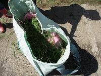 草取りをしていると、ダンゴムシがいました。いっぱい取れた草を見せてくれました。