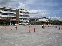 まだまだ、暑い日が続いていますが、学校では、こまめな水分補給や休憩など、熱中症対策に取り組みながら、体育の学習をしています。毎日、「暑さ指数(WBGT)」と「気温や湿度」等をチェックしながら、屋外での活動が安全にできるか判断し、実施しています。