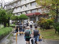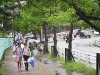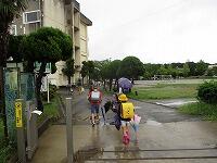 今日は、朝から雨が降っていて、『久しぶりの雨の日の登校』でした。でも、ちょうど、家を出る時は、雨が降っていましたが、学校近くになると雨が弱くなったり、止んだりしていました。いつもより気温は下がりましたが、湿度がとても高いです。子どもたちは、久しぶりの雨で、傘や合羽の扱いにちょっと苦労しているようでした。