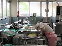 食缶は、1つ1つ丁寧に洗っていきます。いつもおいしい給食をありがとうございます。