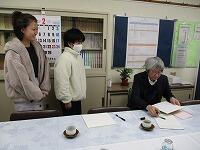 みんなで記念写真を撮りました。書けた感想を菊池先生に渡して握手です。「ありがとう。」「ありがとう。」