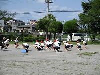 はじめに、準備運動をしました。いろいろな跳び方を練習しています。