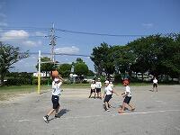 はじめに、バスケットコートの周りを走りました。次に、準備運動をしました。