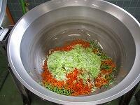 彩の鮮やかなきゅうりやにんじん、キャベツ、切干大根を混ぜていきます。
