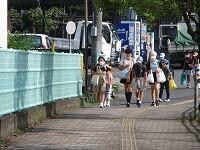今日の『登校の様子』です。昨夜は、雷とともに雨が降りました。雨が降って、少し涼しくなった気がします。朝は、少し風があって昨日よりは、蒸し暑くはありませんでした。しかし、このところ、気温が急激に上がり暑さが厳しく、子どもたちの様子を見ていると、少しバテ気味のように感じます。でも、「あいさつ」は、頑張って行っています。