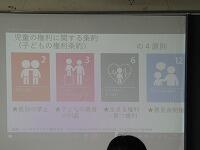さらに、「人権に、こどもの、がついています。」「子どもの人権は、54個あります。」「中でも今日は、この4個について考えていきます。子どもの権利の4原則になります。」