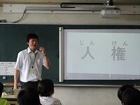 「人権って、何ですか?」「どういうことですか?」講師の小松先生が、子どもたちに問いかけました。