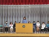 「立会演説会」が、始まりました。「どんな学校にしたいか」、演説しています。