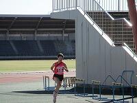1区の走者です。1区は、2.14kmを走ります。男子チームの1区は、トップで競技場に戻ってきました。すごいです!