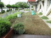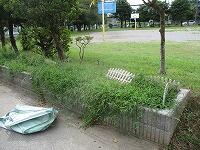作業前の花壇の様子です。夏休み明けは、毎年、いつもこんな感じです。
