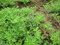 今まで、草で覆われていたので、わかりづらかったのですが、これが、「落花生」の苗です。はっきりとわかります。
