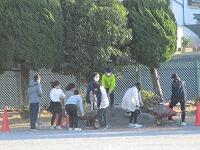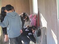 1月の反省を行った後、飼育小屋の掃除をしていました。ウサギのための砂入れの作業を行っていました。