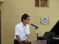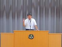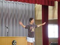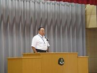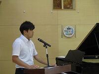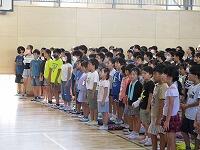 終業式の後に、特設クラブ活動(部活動)担当の藤本先生から、「陸上競技大会」と「市内音楽発表会」の日程について、説明がありました。「陸上競技大会」は、10月11日(水)に、「市内音楽発表会」は、10月18日(水)にそれぞれ実施します。