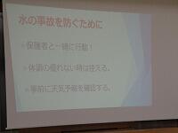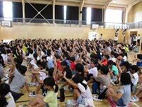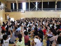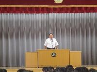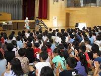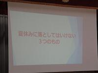 中村先生は、「規則正しい生活をすること」と「水の事故を防ぐために」、「夏休みに落としてはいけない3つのもの」について話しました。「落としてはいけない3つのもの」とは、・・・。「命」と「信頼」と「学力」です。
