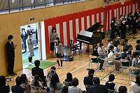 「校長式辞」と「PTA会長祝辞」、「記念品贈呈」の様子です。