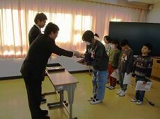 次は、生徒指導主任の先生から「冬休みの生活について」の話です。「ふゆやすみ」のあいうえおかるたを発表しました。「ふりかえろう!2学期の学習! ゆめをもとう!新年が始まるよ やくそくをまもろう!お金の使い方 すすんでやろう!お手伝い! みんなで守ろう!交通ルールと遊び方!」の5つの約束です。