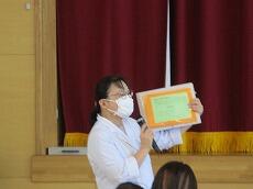 保健関係については、養護教諭の相澤先生が説明しました。事前の健康調査は、期日までにQRコードを読み込んで登録します。