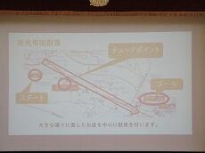 見学するところや昼食場所等の写真をスライドで上映しました。歴史的建造物等の見学をします。