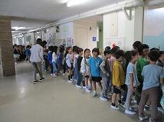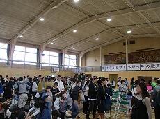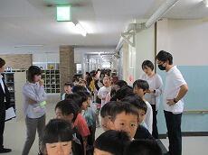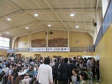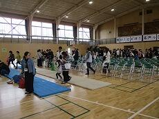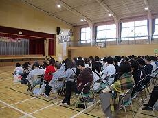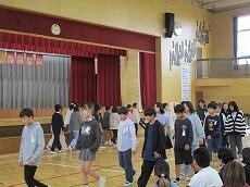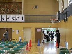 1・2年生の発表が終わって、保護者の入れ替えです。今回、体育館の出入口を入口専用と出口専用に分けました。
