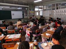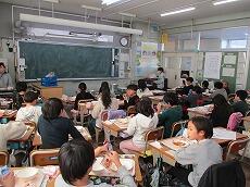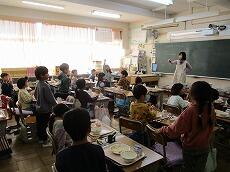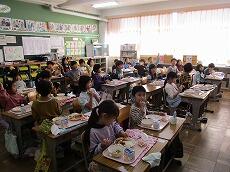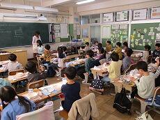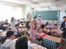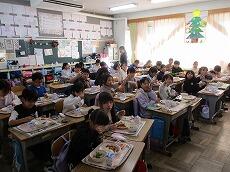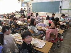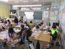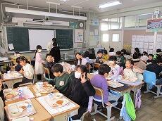 「2学期最後の給食は、おいしいですか?」「はーい!」とうれしそうに答えました。「いつもよりさらに味わって、残さずに食べてくださいね。」