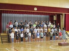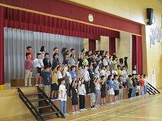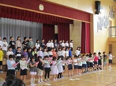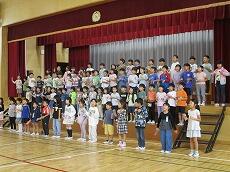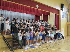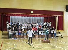 1年生は、小学校で初めての発表です。「たいようのサンバ(合唱)」と「きょうもあしたも1年生(合唱)」を発表します。