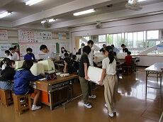 今日は、5年生が家庭科の学習で、『初めてミシン』を使いました。子どもたちは、『初めてミシン』を操作するので、不安な気持ちでいっぱいです。そこで今回、コミュニティ・スクールの『学習支援ボランティア』の皆さんに協力していただきました。