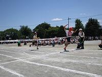 「高学年選抜紅白対抗リレー」の様子です。第1走者が、くじを引いています。スタートしました。