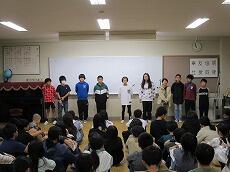 「開校式」のときと同じように、研修室で行いました。実行委員の司会進行で始まりました。