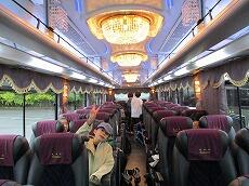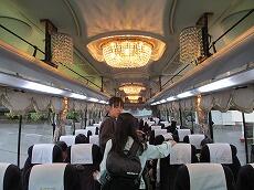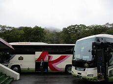 荷物を持って、バスへ移動です。施設を出たときは、雨がポツポツ降っていましたが、時より日が差し込んでいました。