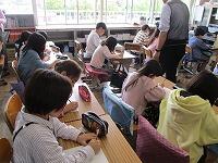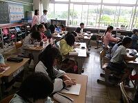 今日の「振り返り」です。「4年生だと3分間で、何行ぐらい感想が書けますかね?」「・・・。」子どもたちは必死に書いています。