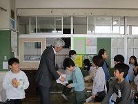 最後にクラスみんなで記念写真を撮りました。今日の「振り返り」を提出して、菊池先生と握手です。子どもたちからは、「心の切りかえができ、とても大切な1時間だった。」「いろんな意見があっていいと思った。」「コミュニケーションの大切さがよくわかった。」「もっといいことをしてみたくなった。」といった感想がありました。校長室でサインをいただきました。菊池先生、御指導いただきありがとうございました。次回もよろしくお願いします。