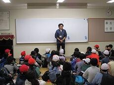 研修室で、「開校式」を行いました。施設の方にあいさつをしました。