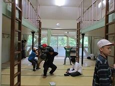 「雨天」のため、登山ができなかったのが、残念です。この後、食堂でお弁当を食べて、「館内ウォークラリー」を行います。「野外炊事」は、何とかできそうです。