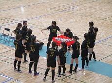 決勝の相手は、「大津ケ丘中」チームです。試合途中、選手が足をつって交代するアクシデントがありましたが、みんなで最後まで精一杯戦うことができました。選手全員が活躍していました。