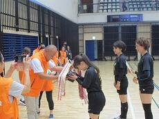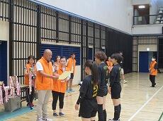 閉会式の様子です。「表彰」では、「賞状」と「優勝カップ」、「バレーボールのボール」が授与されました。