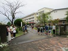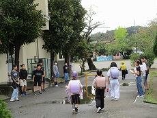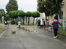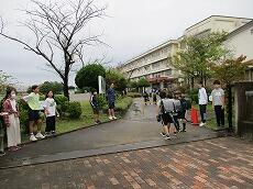 今日は、『あいさつ運動の4日目』でした。明け方まで雨が降っていたので、雨上がりの登校です。ところどころ、水たまりができていました。