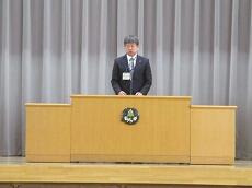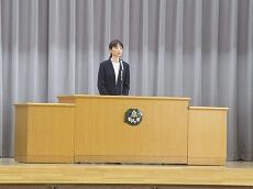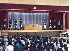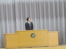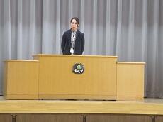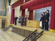 転退職される職員の「入場」です。「転退職職員の紹介」です。松瀨教頭先生が、お別れする職員を紹介しました。