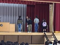 児童代表から転退職する職員へ「花束の贈呈」です。