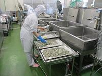本校の調理業務は、市の委託により今年の1月から今年度も引き続き、給食委託会社の「日本給食」さんが担当しています。朝は、6時過ぎ頃から食材や牛乳の搬入作業を行っています。お昼の給食のために朝早くから準備しています。毎日、約480人分の給食を作っています。