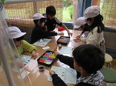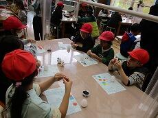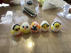 「キャンドル作り」では、時間が限られている中、デザインを考え、上手にロウシートを貼っていきました。世界に1つだけのすてきな「キャンドル」を作ることができました!