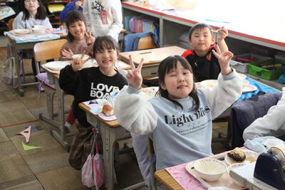 今日の給食は揚げパン きなこ か ココア を選べます。
