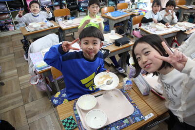 ココアを選択している子の方が多いようです。きなこが口についていても