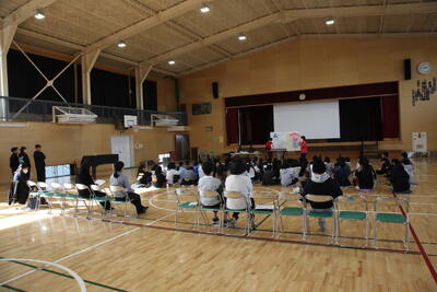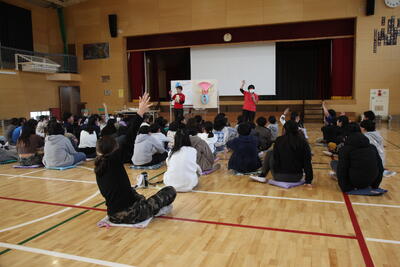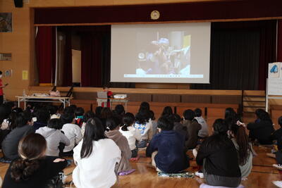 今日は5年生が5、6時間目に体育館でいのちの授業を行いました。