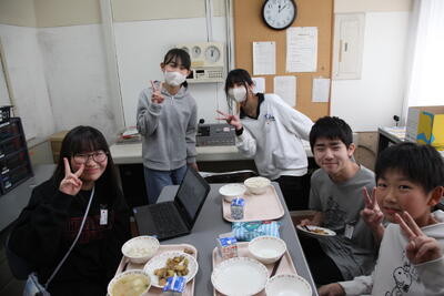 今日は給食の様子をお届けします。毎日、給食委員会の児童が今日の献立を放送しています。