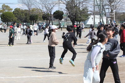 広い校庭でのロング昼休みの光景は名戸ケ谷小の名物です。